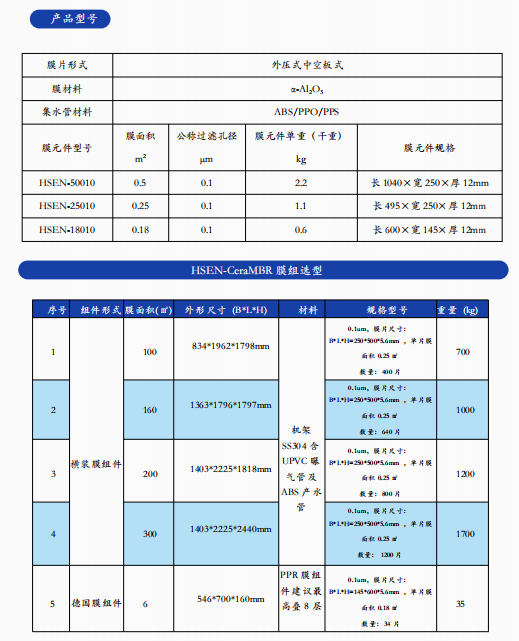 HSEIN-CeraMBR 产品设计采用中空的平板结构,膜面十分平整,内部支撑的结构也是通过优化设计所得,因此具备极佳的产品强度。此外,氧化铝材料的硬度极高,更兼有一定的壁面厚度,从而更保证了膜产品不会出现类似有机过滤膜那样的断丝、破损等现象,因此出水效果更佳。